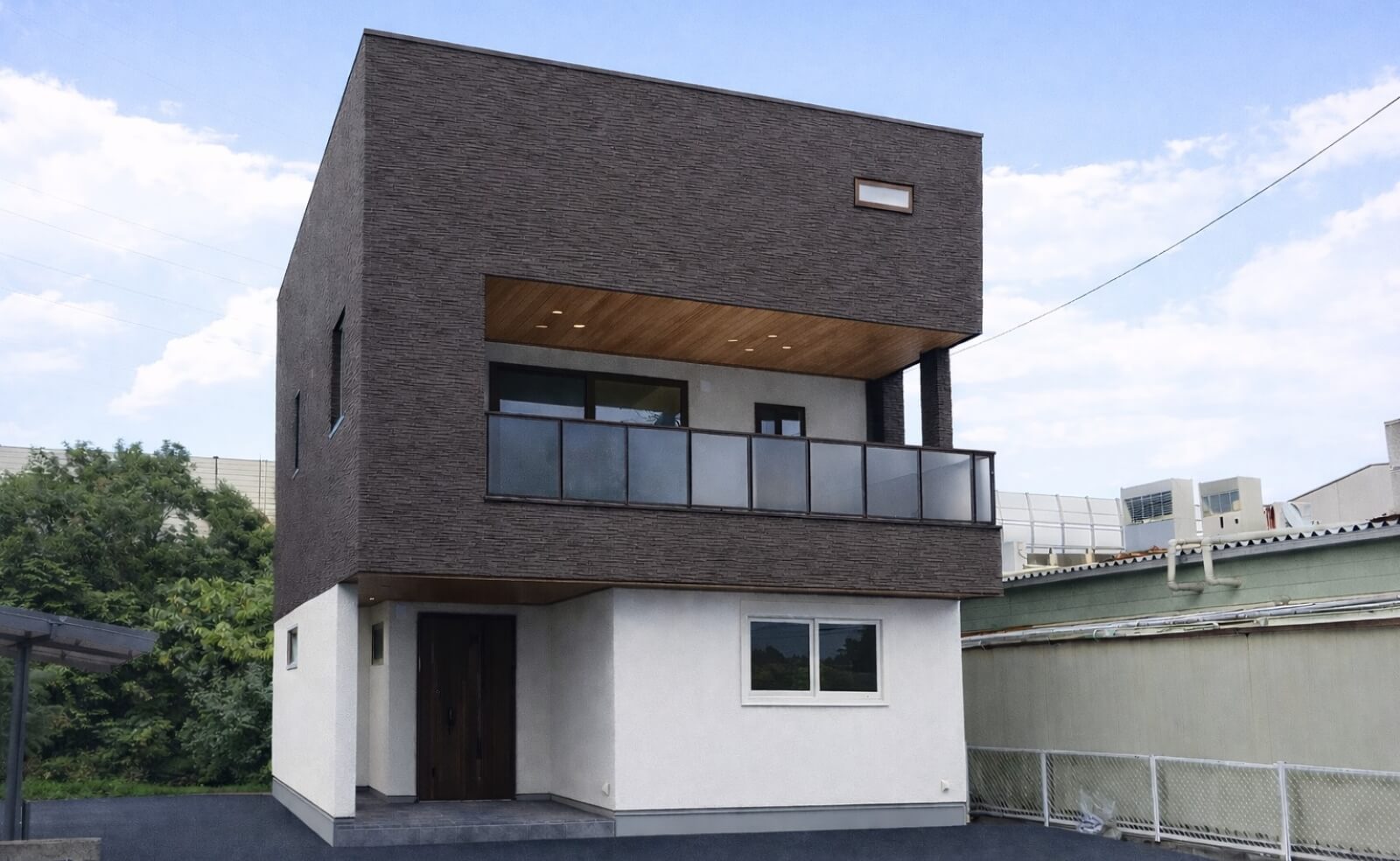 シンプルでスッキリした印象の、四角い箱を組み合わせたお家